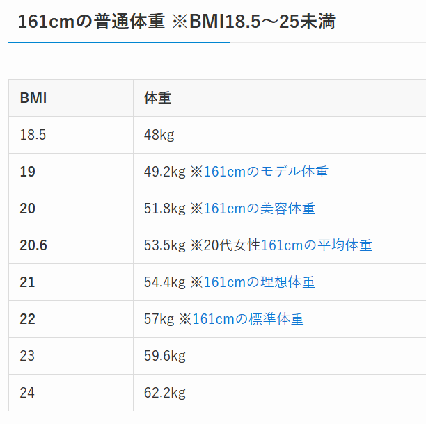 そんなふっくらしたと言われている吉高由里子さんの身長は161㎝ですが、161㎝の方のBMIを調べてみました。